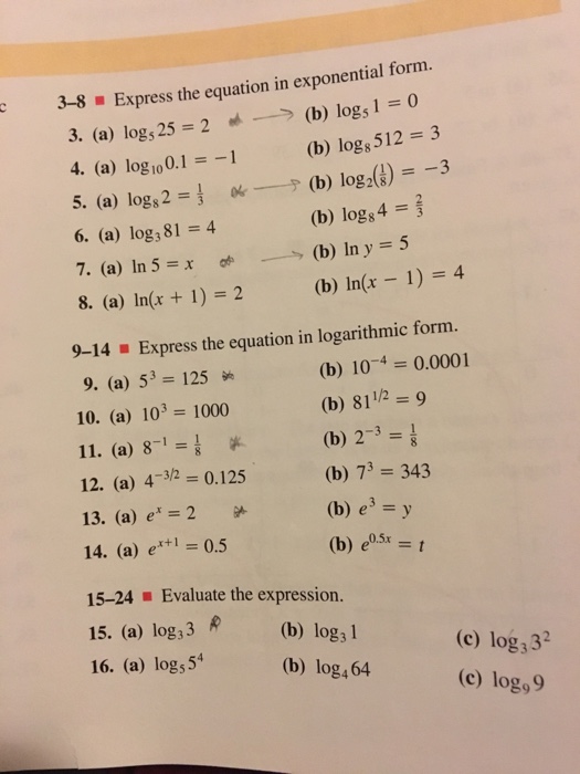Solved 3 8 Express The Equation In Exponential Form B Chegg Com