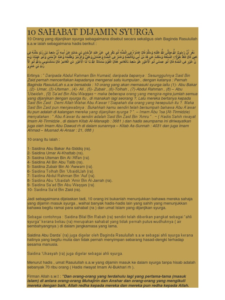 Sepuluh Sahabat Nabi Saw Yang Dijamin Masuk Surga 10 Sahabat Nabi Saw Yang Dijamin Masuk Surga Shopee Indonesia