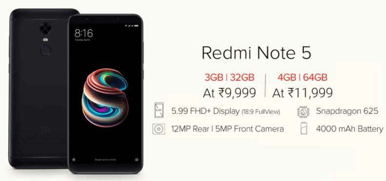 Xiaomi Redmi Note 5 Pro 4gb Ram Mobile Price List In India December 2020 Ispyprice Com
