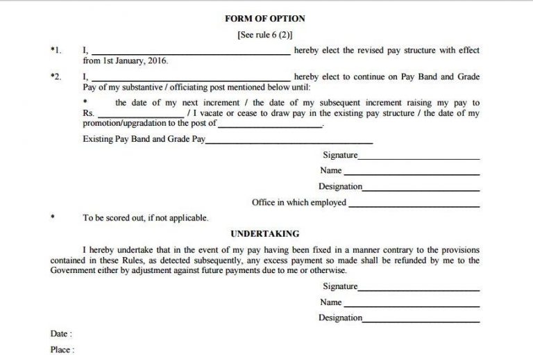 Download 7th Cpc Option Form And Conditions To Exercising Option Indian Government News