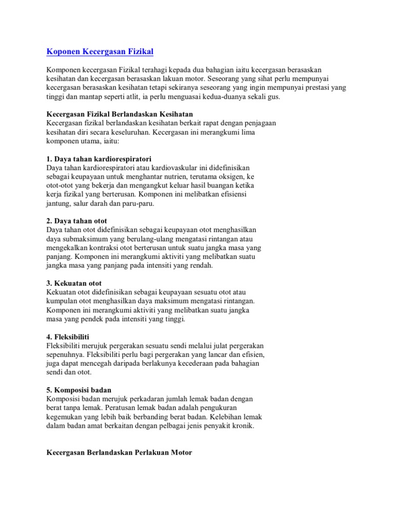 Pdf Komponen Kecergasan Fizikal Prinsip Latihan Dan Pembolehubah Latihan