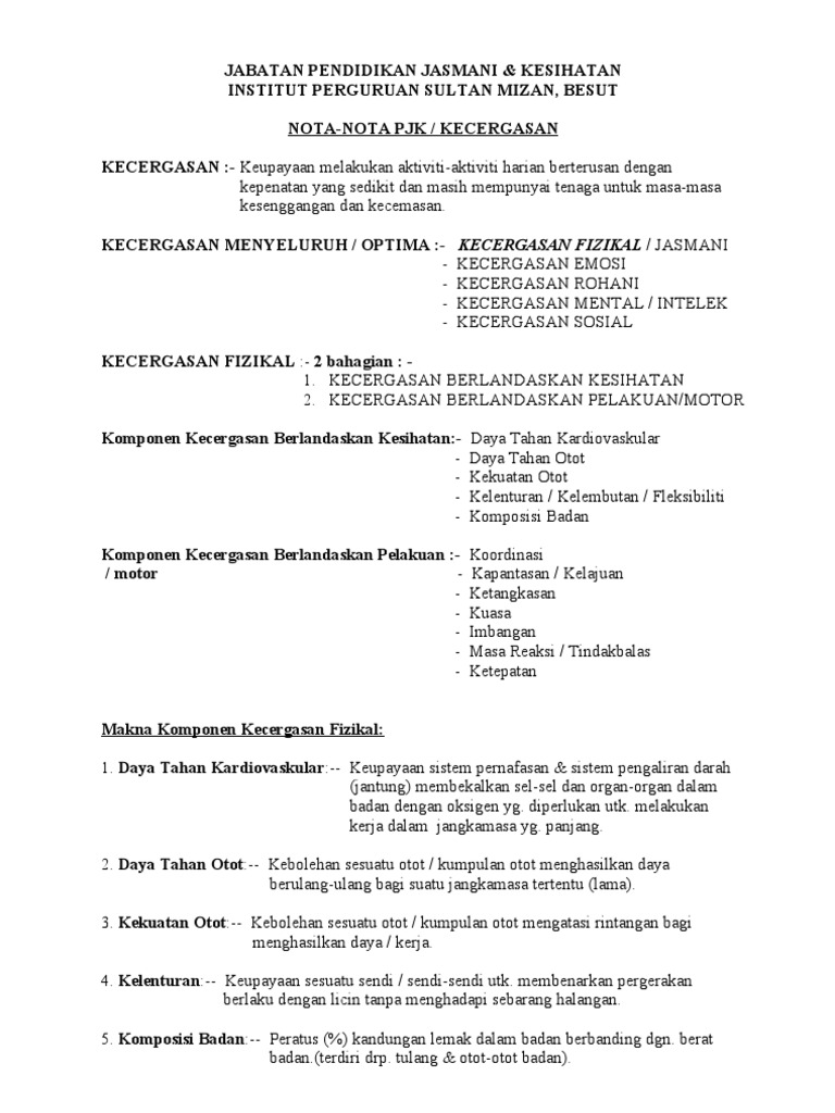 Kesihatan Dan Kecergasan Fizikal Topik 1 Kecergasan Fizikal