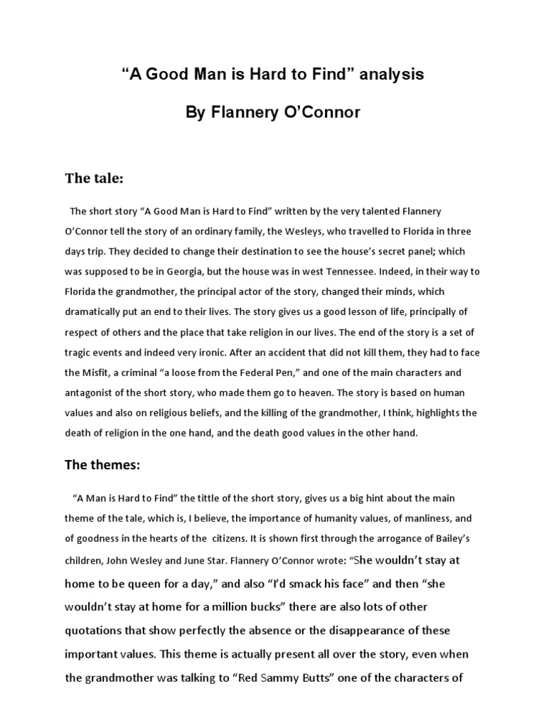 A Good Man Is Hard To Find Short Story Analysis