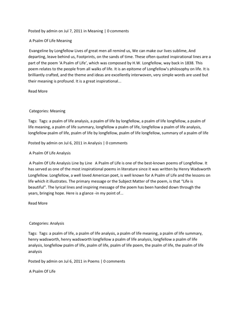 A Psalm Of Life By Henry Wadsworth Long Fellow