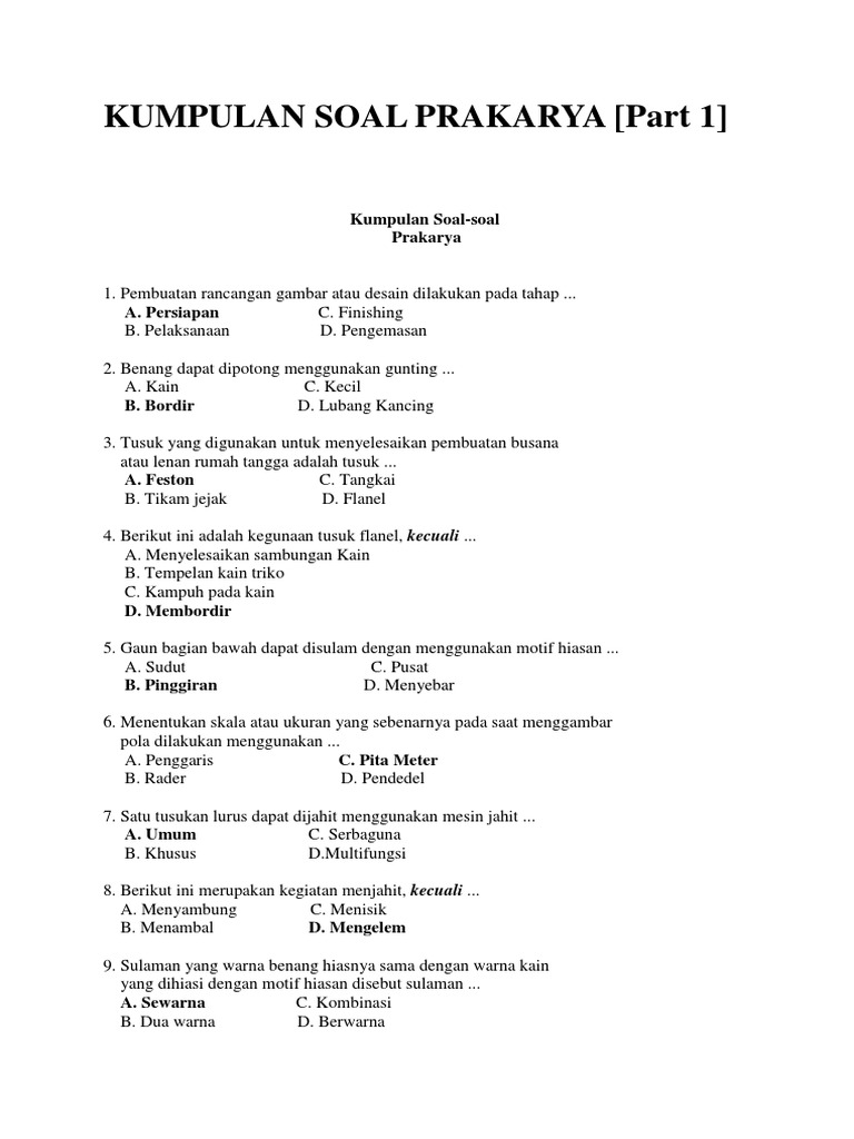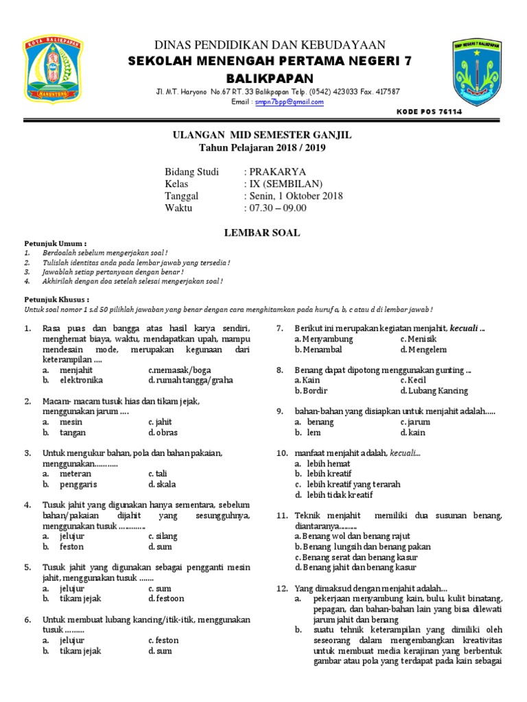 Soal Pertanyaan Dan Kunci Jawaban Uji Kompetensi Menjahit 24 Juli 2016 Reporter Purbalingga Reporter Purbalingga