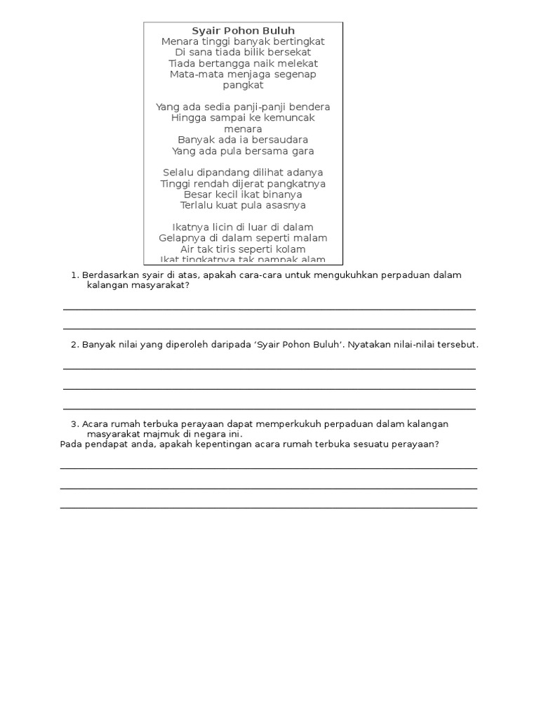 Syair Pohon Buluh K Maksud Tema Persoalan Bentuk Gaya Bahasa Nilai Pengajaran Bumi Gemilang