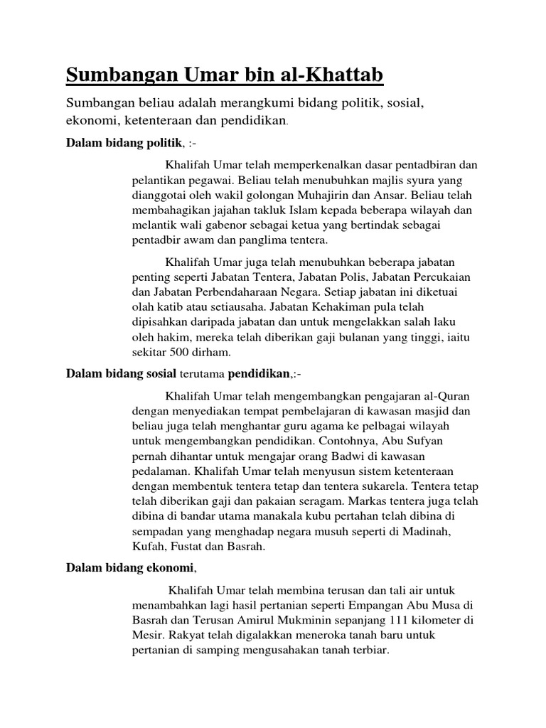 Sumbangan Khalifah Umar Al Docx Sumbangan Khalifah Umar Al Khattab Dalam Membangunkan Negara Islam Madinah Pendahuluan Nama Sebenar Beliau Ialah Umar Course Hero