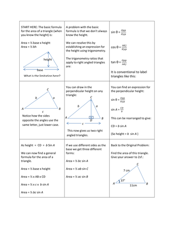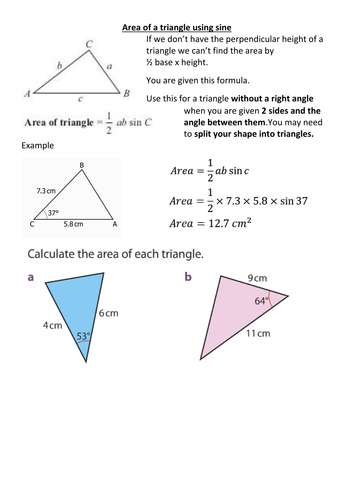 Finding The Area Of Any Triangle Using Trigonometry Teaching Resources