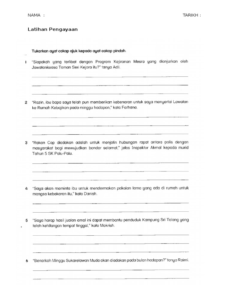 Latihan Pengayaan Ayat Cakap Ajuk Cakap Pindah