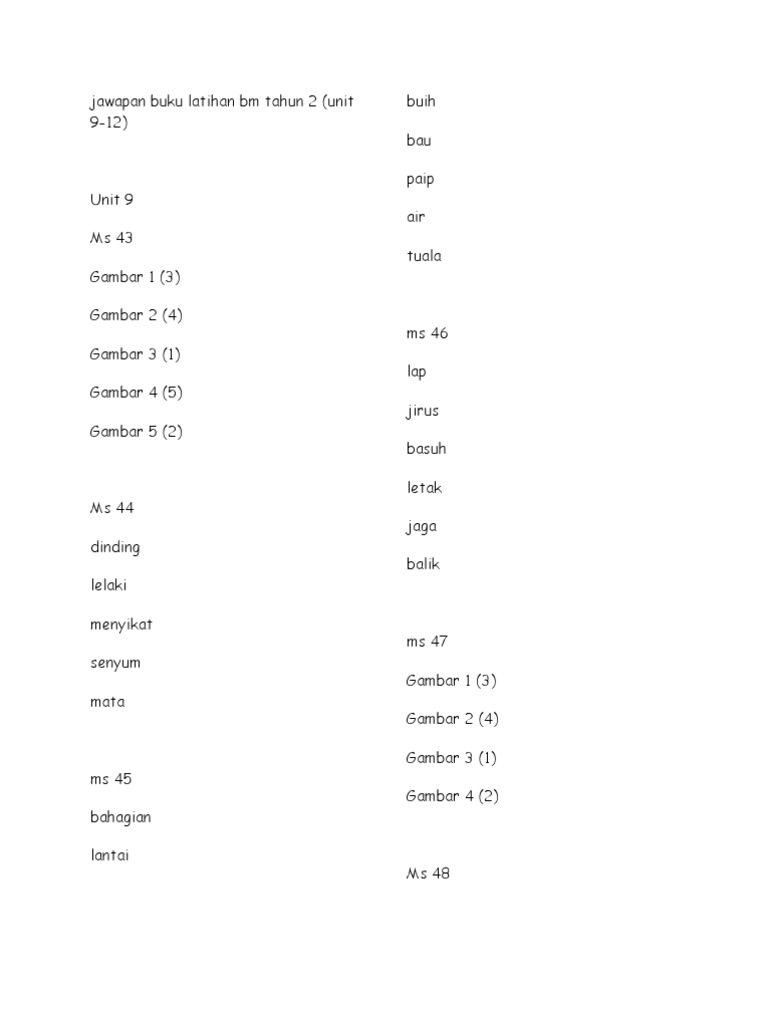 Jawapan Buku Aktiviti Bm Tahun 2 Unit 9 12