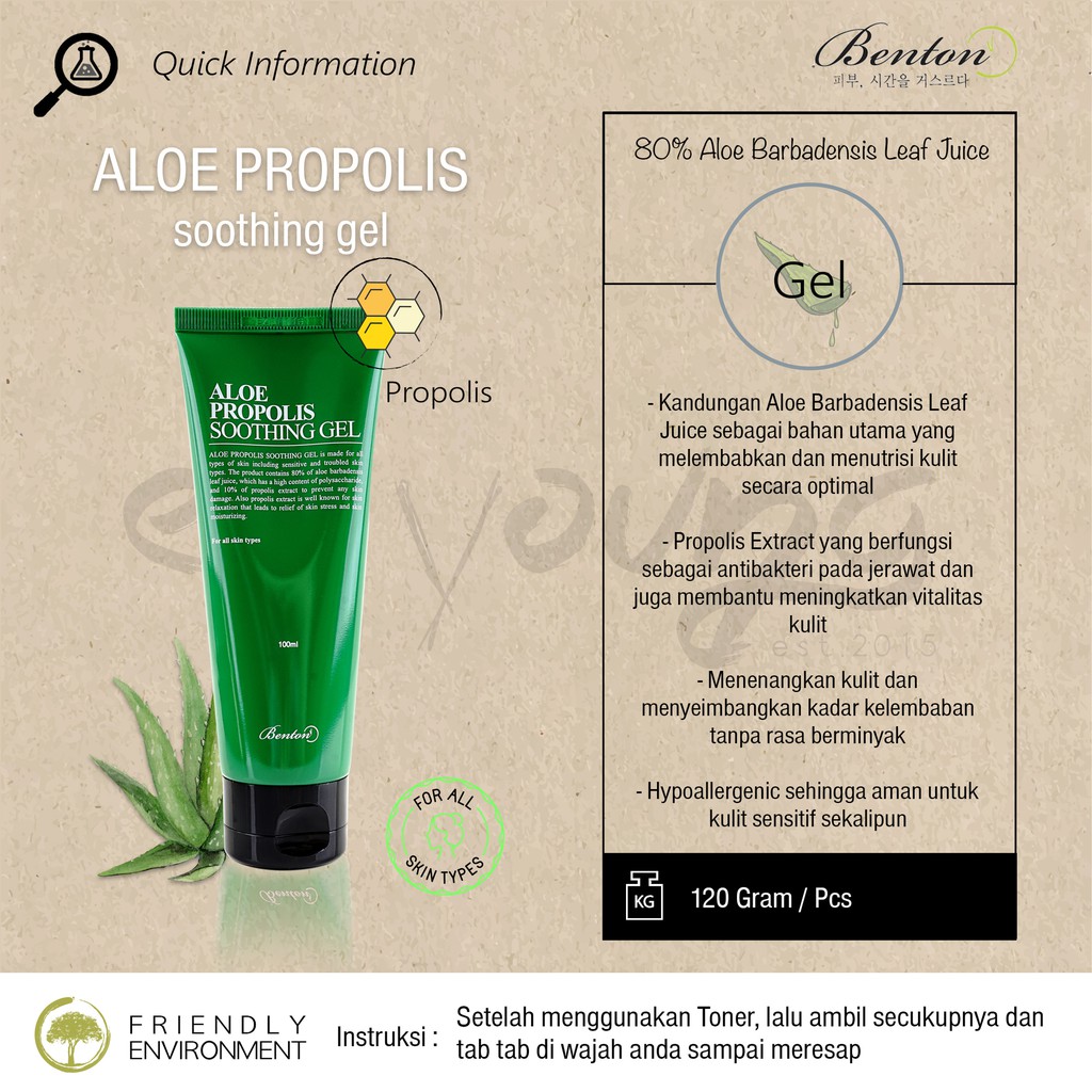 Bpom Benton Aloe Propolis Soothing Gel 100ml Shopee Indonesia