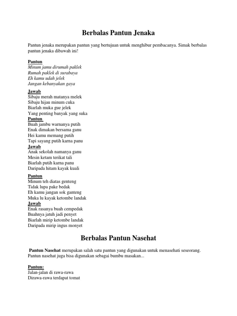 Berbalas Pantun Jenaka Contoh Pantun Teka Teki Bagikan Contoh