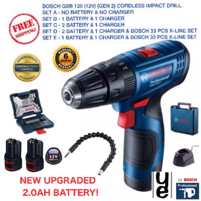 Bosch Gen 2 Cordless Impact Drill Driver Gsb 120 Li Set Shopee Malaysia
