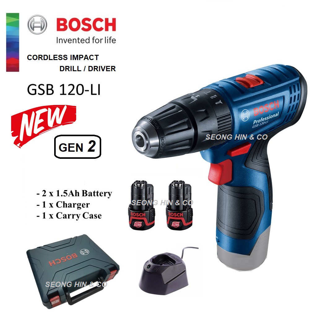 Bosch Gsb 120 Li Gen2 Cordless Impact Drill 2 0ah Battery Mesin Gerudi Shopee Malaysia