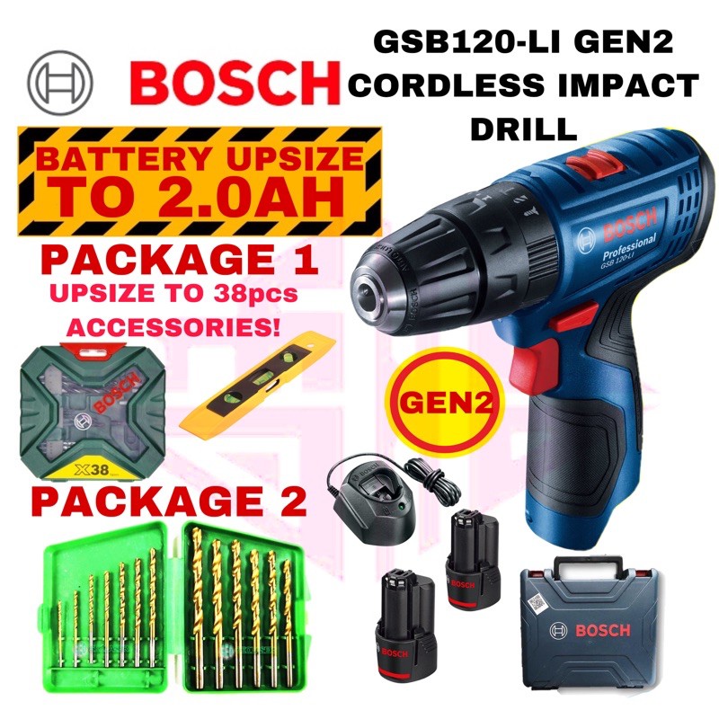 Bosch Gsb 120 Li Gen 2 Cordless Impact Drill With Upsize 38pcs X Line Set Shopee Malaysia