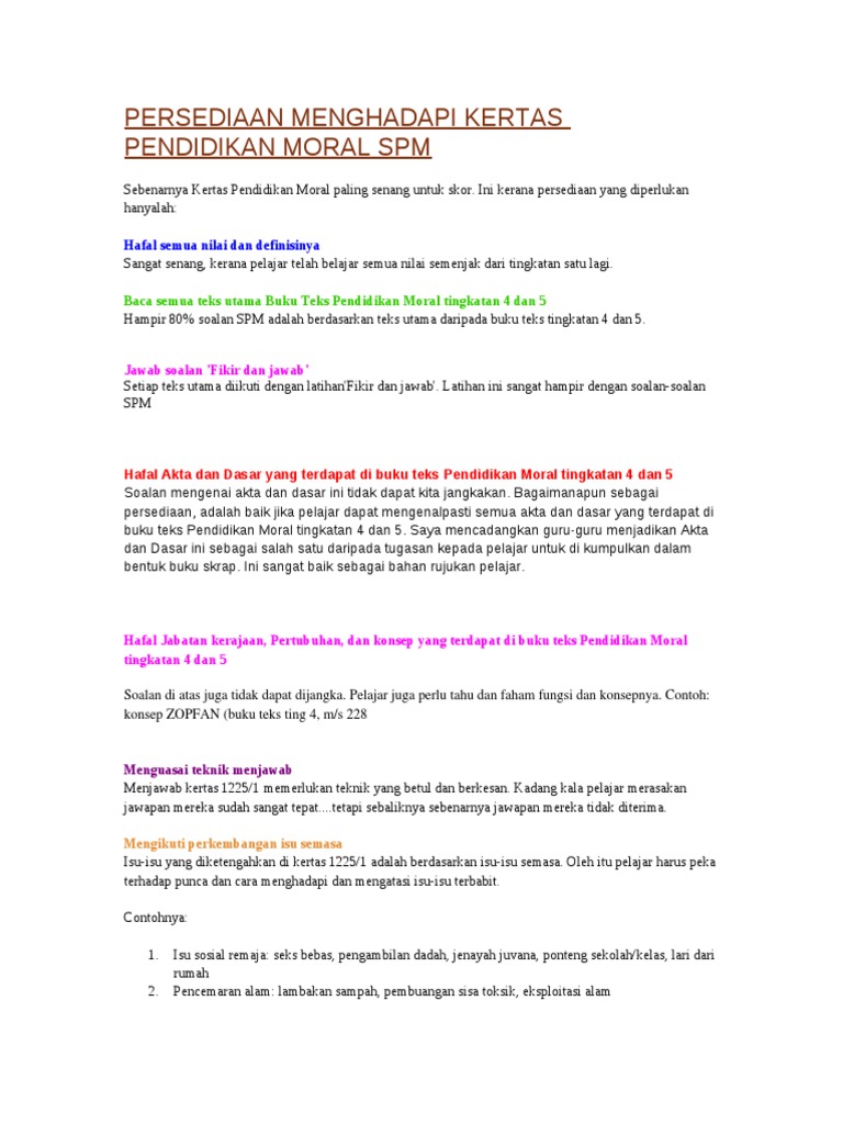 Persediaan Menghadapi Kertas Pendidikan Moral Spm