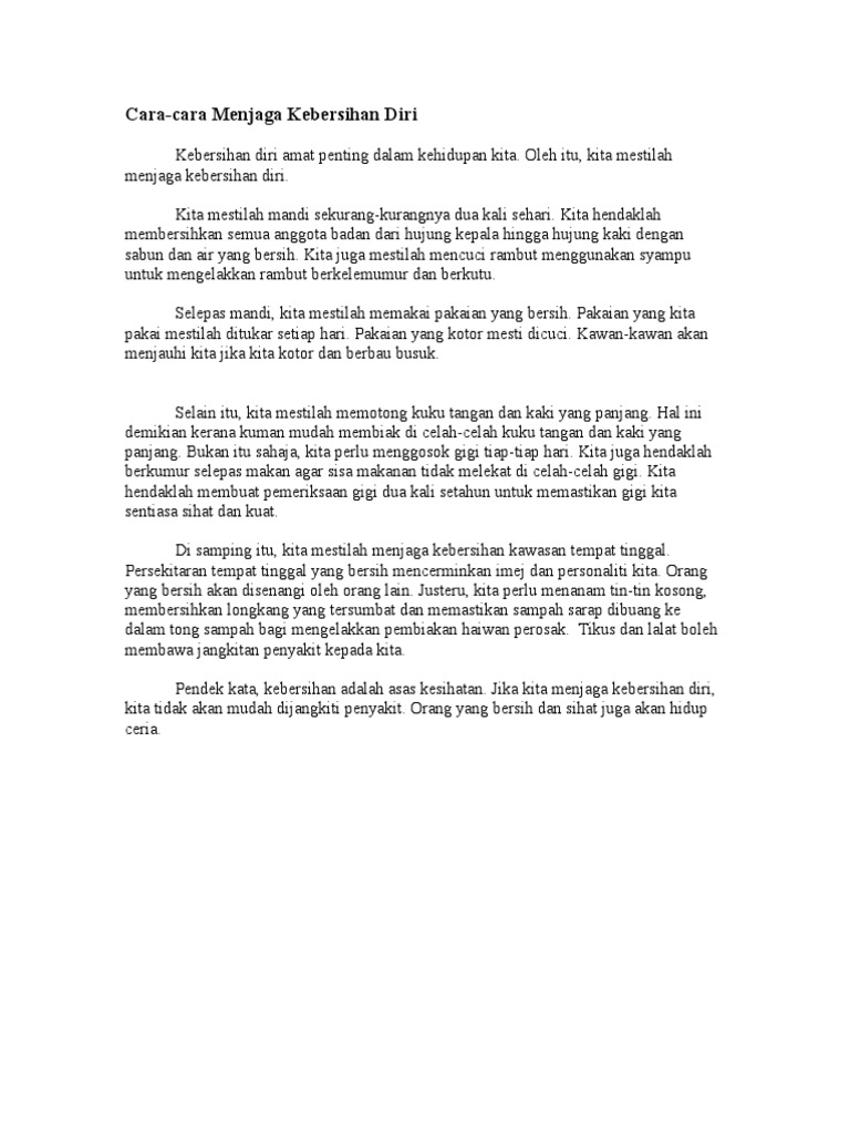 Cara Cara Menjaga Kebersihan Diri Karangan