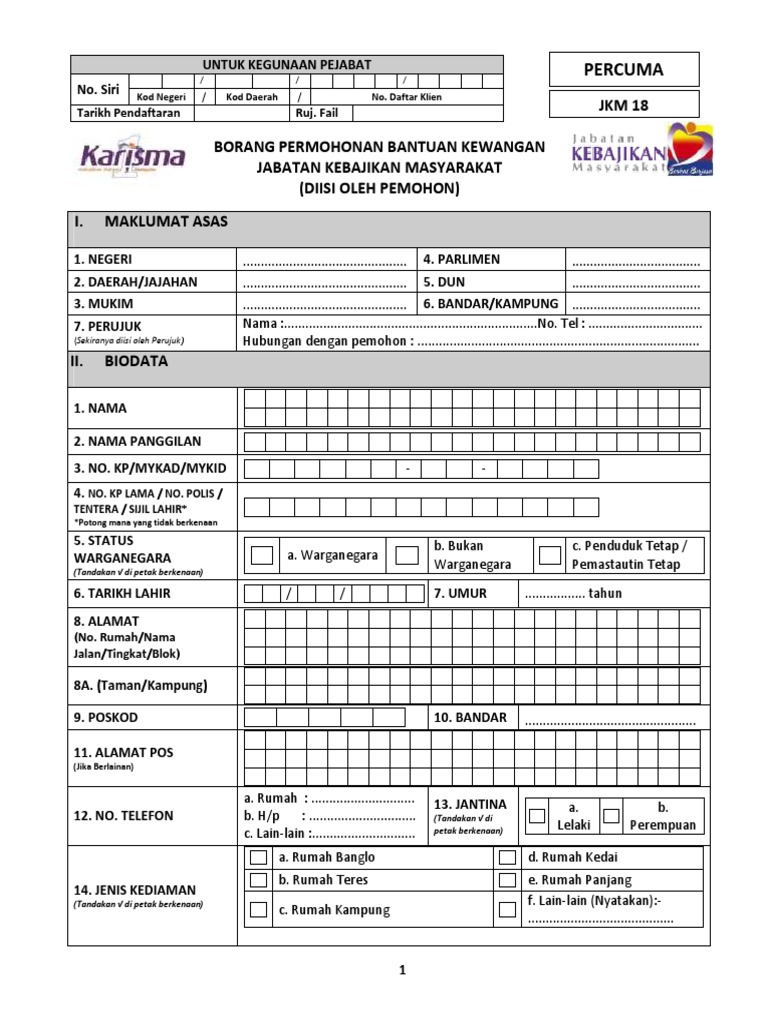Jkm 18 Borang Permohonan Bantuan Kewangan