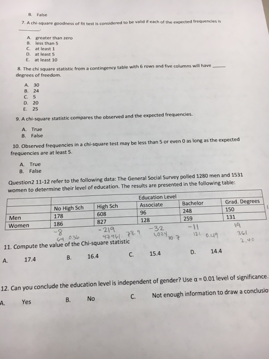 Solved Question 11 If You Were Doing A Chi Square Goodnes Chegg Com