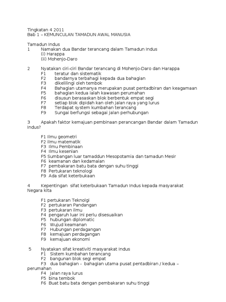 Spm 4 Sejarah Tamadun Indus