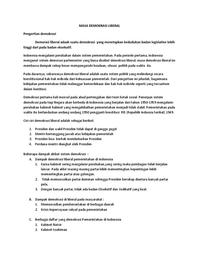 Ciri Ciri Demokrasi Liberal Di Indonesia Tahun 1950