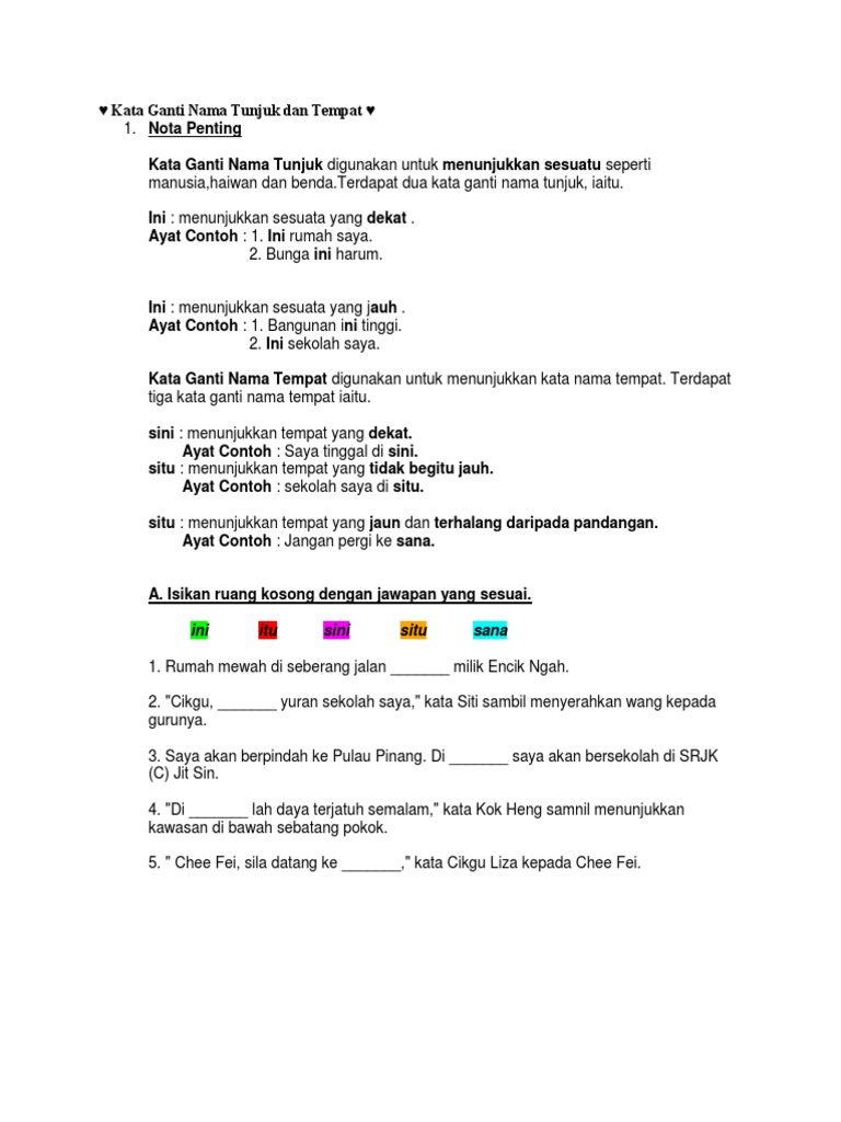 Kata Ganti Nama Tunjuk Dan Tempat Docx