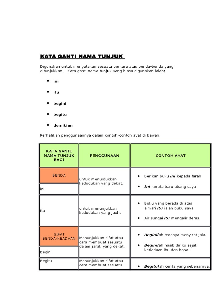Kata Ganti Nama Tunjuk Pages 1 6 Text Version Anyflip