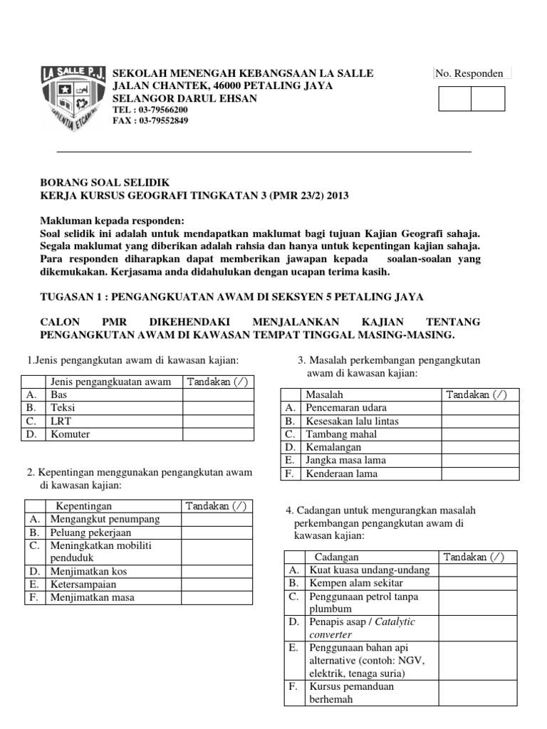 Contoh Borang Soal Selidik Geografi Tingkatan 2 Pengangkutan Awam