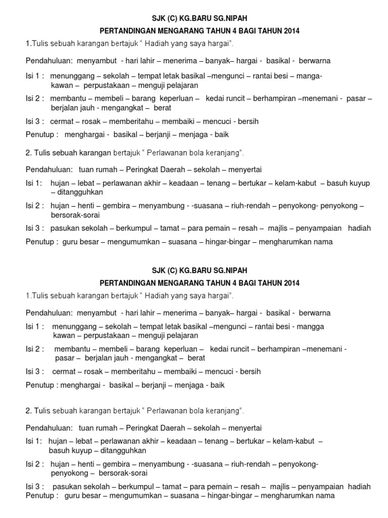 Contoh Karangan Bahasa Melayu Tahun 4 Sjkc