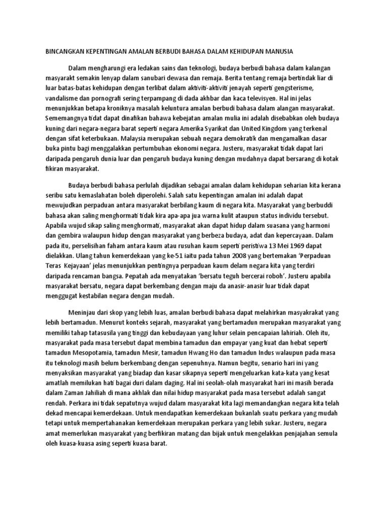 Kepentingan Budi Bahasa Dalam Masyarakat Malaysia Pdf