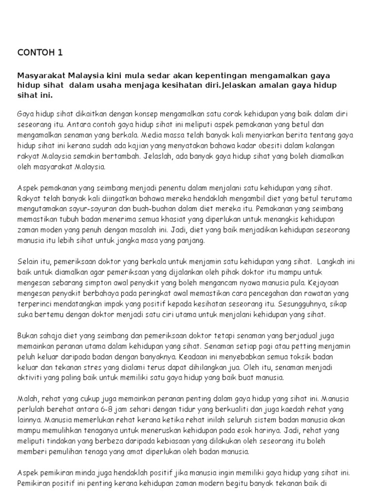 Spm Karangan Masyarakat Malaysia Kini Mula Sedar Akan Kepentingan Mengamalkan Gaya Hidup Sihat Dalam Usaha Menjaga Kesihatan Diri Jelaskan Amalan Gaya Course Hero