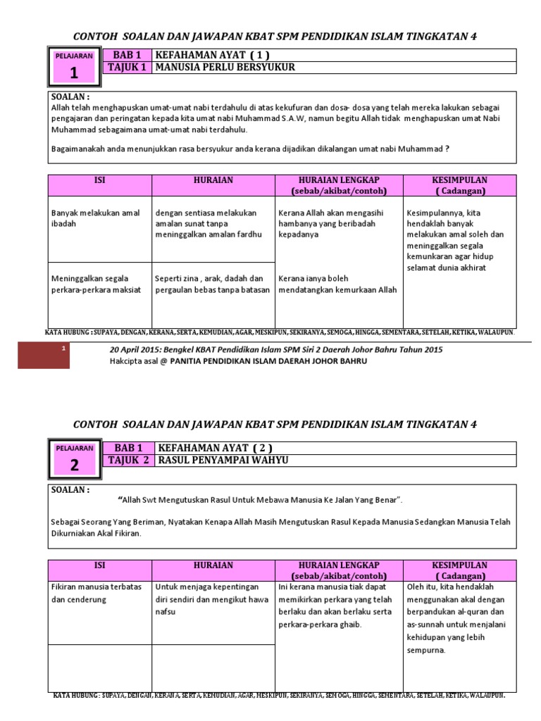 Contoh Soalan Spm Pendidikan Islam Kertas 1 Kerja Kosn