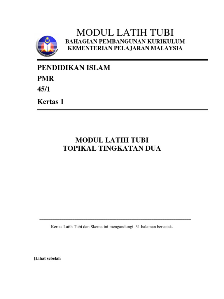 Modul Latihan Topikal Pt3 Pendidikan Islam Lengkap Dengan Jawapan