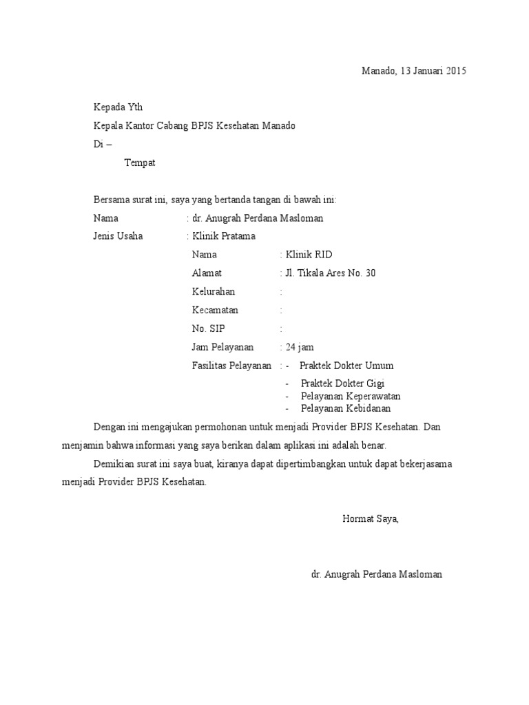 Contoh Surat Permohonan Menjadi Dokter Bpjs Contoh Surat