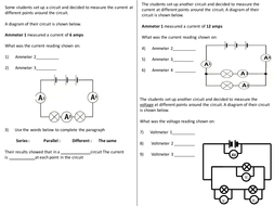 Current Voltage In Circuits Questions Worksheet Teaching Resources