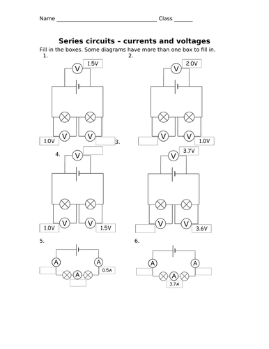 Series Parallel Circuit Voltage Worksheet Teaching Resources