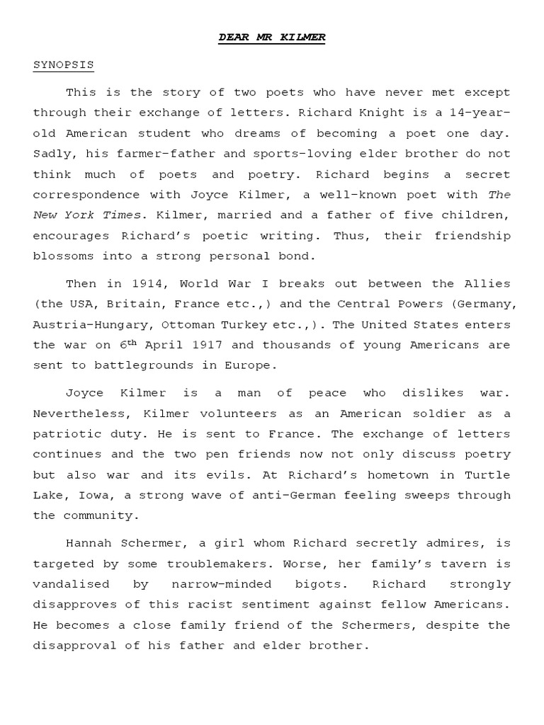 Dear Mr Kilmer Poetry Poetry