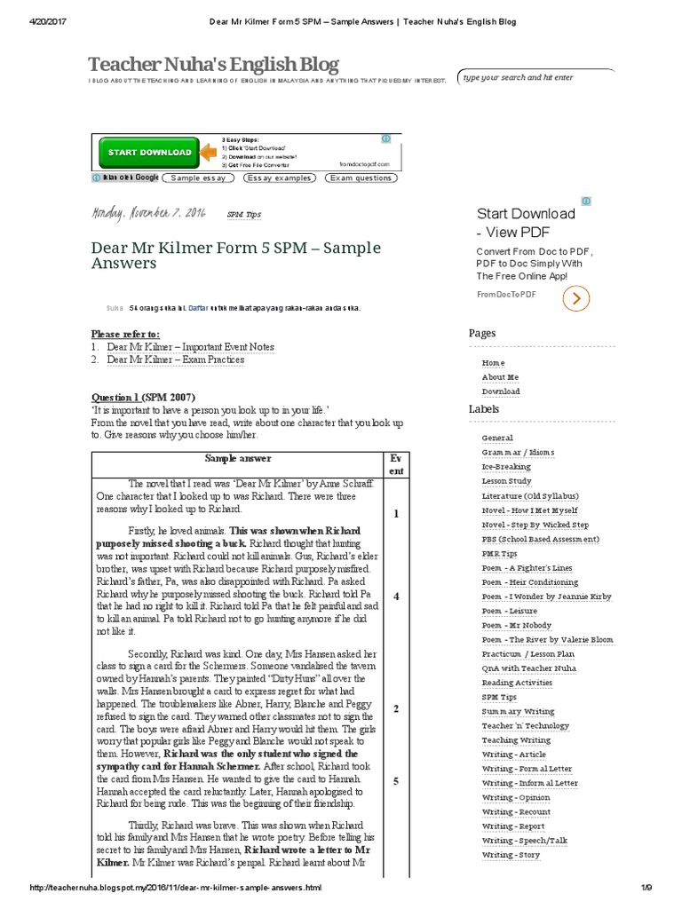 371765464 Modul Dear Mr Kilmer Form 5 Spm Docx Dear Mr Kilmer Form 5 Spm U2013 Sample Answers Question 1 Spm 2007 U2018it Is Important To Have A Person Course Hero