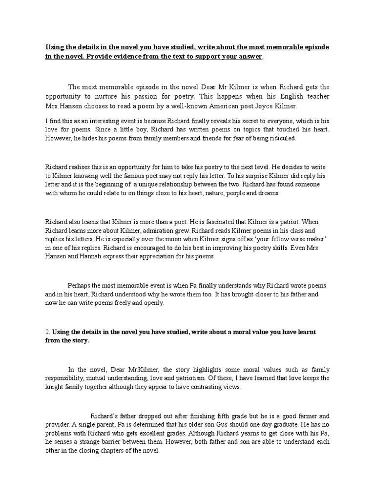 347240675 In The Novel Dear Mr Kilmer Written By Anne Schraff Docx In The Novel Dear Mr Kilmer Written By Anne Schraff The Character Who Shows Course Hero