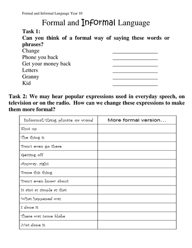 Ks2 Formal And Informal Language Powerpoint Year 6 Activity