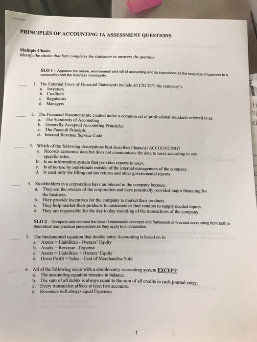 Section A 40 Marks 1 Internal Users Of Accounti Chegg Com