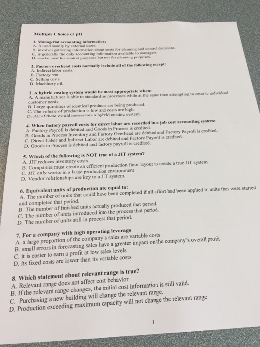 Chapter 01 Testbank Solution Manual Management Accounting Studocu