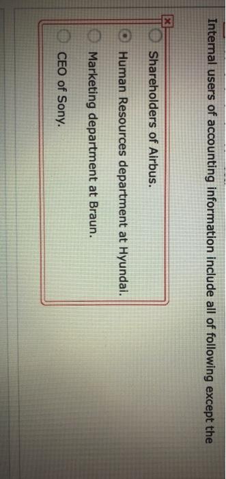 Solved Internal Users Of Accounting Information Include A Chegg Com