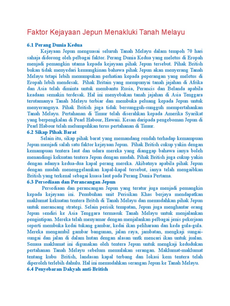 Faktor Faktor Yang Mendorong Kejayaan Tentera Jepun Di Tanah Melayu Pdf