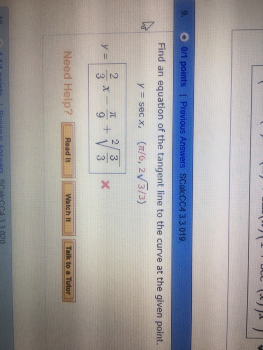 Equation Of The Tangent Line To Y Sec X At Pi 3 2 Youtube