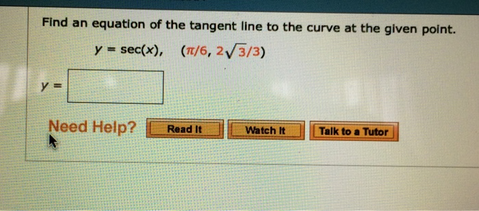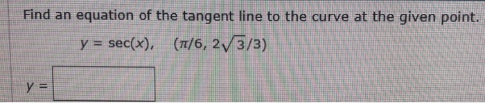 Find An Equation Of The Tangent Line To The Curve At The Given Point Y Sec X π 6 2 3 3