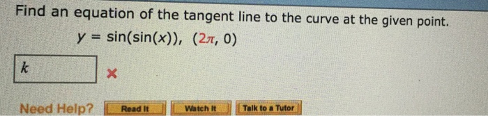 Y Sin Sin X Pi 0 Find An Equation Of The Tangent Line To The Curve At The Given Point Youtube