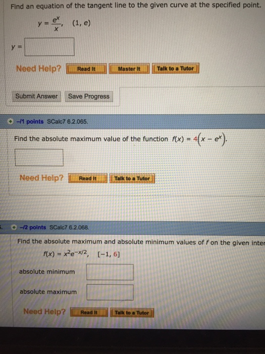 Find Equation Of The Tangent To Lnx X At X 1 And X E Youtube
