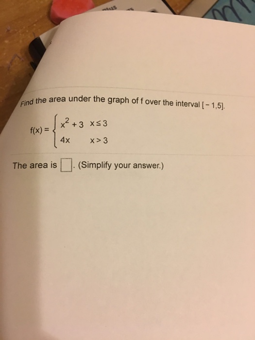 Solved Find Area Under The Graph Of F Over The Interval Chegg Com