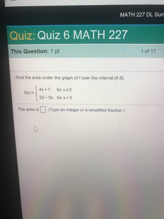 Find The Area Under The Graph Of F Over The Interval The Area Is Nothing Simplify Your Answer